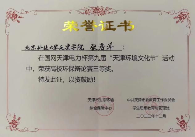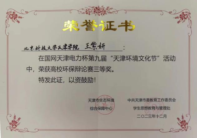 12月9日,由天津市生态环境局、天津市教育委员会及天津市文明办、津云新媒体集团、国网天津电力公司共同发起的国网天津电力杯高校环保辩论赛决赛暨第九届“天津环境文化节”闭幕式落下帷幕。由mg4355官网校团委副书记黄云汉老师指导的学院辩论队与来自全市的40所高校的大学生辩论队,经历初赛、复赛、半决赛及总决赛的激烈角逐,mg4355官网辩论队与南开大学、天津工业大学等高校荣获“国网天津电力杯”第九届天津文化节高校环保辩论赛三等奖。