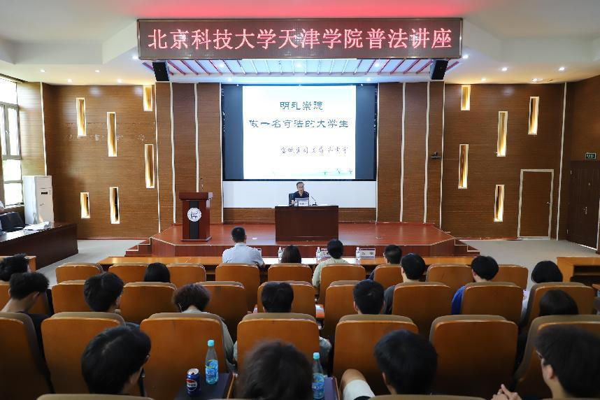 为全面学习宣传贯彻习近平法治思想,特别是习近平总书记“让民法典走到群众身边、走进群众心里”的重要指示精神,5月22日,学院邀请天津市宝坻区司法局行政复议审理与应诉科科长齐震宇作普法讲座。师生代表200余人共同聆听。