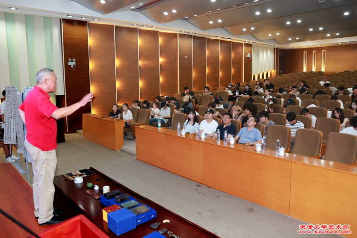 为学习贯彻习近平总书记重要讲话精神,落实“以文化人、以文惠民、以文润城、以文兴业”,深入挖掘历史文化资源,mg4355vip检测中心艺术学院与传统文化研究院于 6 月13日下午举办“文房四宝-古代文房制作工匠技术”讲座。讲座会由中国炎黄文化研究会砚文化研究分会专家委员会委员、中国古代文房艺术史研究学者程骞老师主讲,天津市艺术学会知方书画院院长张长勇、天津文学艺术网总监高蕴辉和艺术学院院长胡宝嘉、艺术学院党总支书记张添善、传统文化研究院教师孙雨馨以及200余名师生参与。