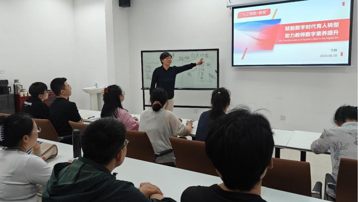 本期讲座特邀mg4355vip检测中心信息工程学院副院长于静教授担任主讲。于教授首先从“数字时代的定义”入手,通过具体而生动实例直观阐释了该概念,成功引发在场教师的浓厚兴趣。继而,她从人工智能技术的最新进展出发,深入分析了在快速发展的数字化、信息化背景下,传统教育模式的局限性。她强调,人工智能技术的引入不仅能够推动教育理念和教学模式的革新,更为个性化和智能化教学提供了强有力的支持。