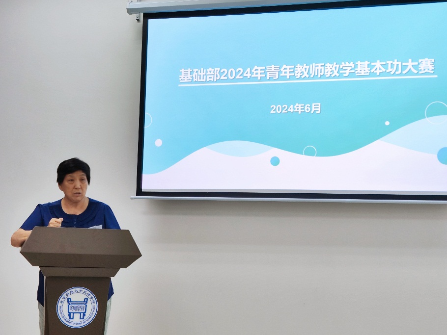 本次比赛共分上午、下午两场进行,每场比赛结束后基础部主任范玉妹教授针对各位教师的比赛情况进行针对性点评。范老师对参赛教师的表现给予了充分的肯定,认为他们在教学理念、教学方法和教学技能等方面都有了长足的进步、展现出了自身较好的实际水平与能力。